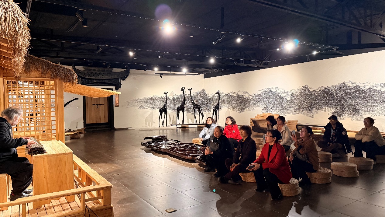 活动现场,钧天坊古琴博物馆创始人、国家级非物质文化遗产项目(古琴艺术)代表性传承人王鹏先生为老师们倾情演奏了三首经典曲目。其演奏手法严谨细腻、气息雄浑古朴,琴声清如溅玉、颤若龙吟,萦绕在博物馆的雅致空间中,让老师们深深沉醉其中,直观领略到古琴艺术的博大精深与独特感染力,也感受到非遗传承人的深厚功底与责任担当。
