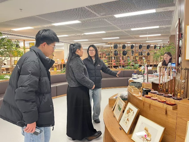调研期间,党员教师们先后走进图书馆文创区及各功能区域,沉浸式感受场馆的设计美学与服务特色。在文创区,大家认真观摩各类文创产品的设计风格、工艺细节,深入了解文创产品与雄安地域文化、图书馆特色元素的融合思路,结合自身设计专业优势,探讨文创产品创新设计、品牌打造的可行路径,为后续将设计力量融入公共文化传播积累实践经验。
