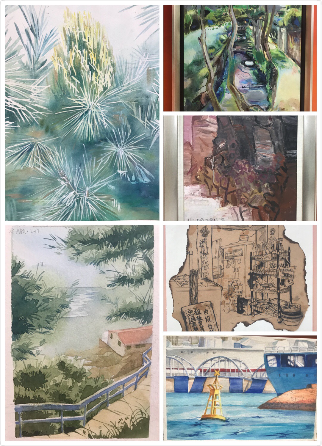 此次2016级写生实习课程师生优秀作品展是设计艺术学院在积极探索红色教育进课堂教学方式改革成果展示,师生们在课程中走进全国著名的"爱国主义教育基地"威海刘公岛中国甲午战争博物院、旗顶山炮台、东泓炮台、铁码头等教育景点,走进山东省著名爱国主义教育基地青岛市博物馆,并重点参观了爱国教育相关展厅,开展了一场踏寻红色遗迹,重温传统教育写生之旅。本次展览的作品是由历年参加写生实习课程的教师和2016级设计艺术学院﹑新媒体学院写生实习课程的同学从近万张作品中精选的500多幅师生优秀写生作品和采风图片。参展作品涉及速写、水粉画、水彩画,丙烯、摄影和油画多种艺术形式,全方位的展示了本年度艺术专业写生实习课程的教学成果及学生的学习情况。