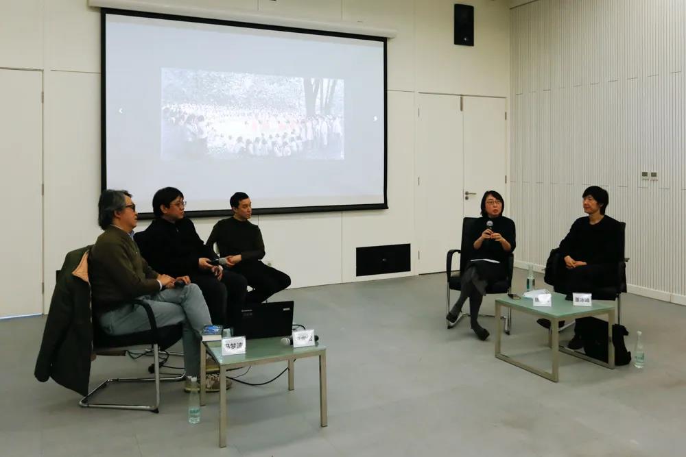 在两场对谈结束后,董冰峰、冯梦波、唐宏峰、李尤松、秦思源在随后的的圆桌讨论中,就两场对谈展开了简要的总结与交流。秦思源首先对冯梦波的创作做出自己的阐释。他认为和自己一样,冯梦波属于当代艺术领域中一种另类的存在和趣味。他创作中的显要特点在于对“时间”的处理。在作品中探索个人与时间,时代与记忆等关系,在当下中国正处于一个特殊的时代节点中,就显得尤为有意义。世界范围内,也可以看到同一代人之间的巨大分歧。对于时间、记忆、情感的探索与表达,可以成为某种人与人达成共性乃至共识的基础。弱化分歧而非强化分歧,这可能是文化艺术具有的价值之一。