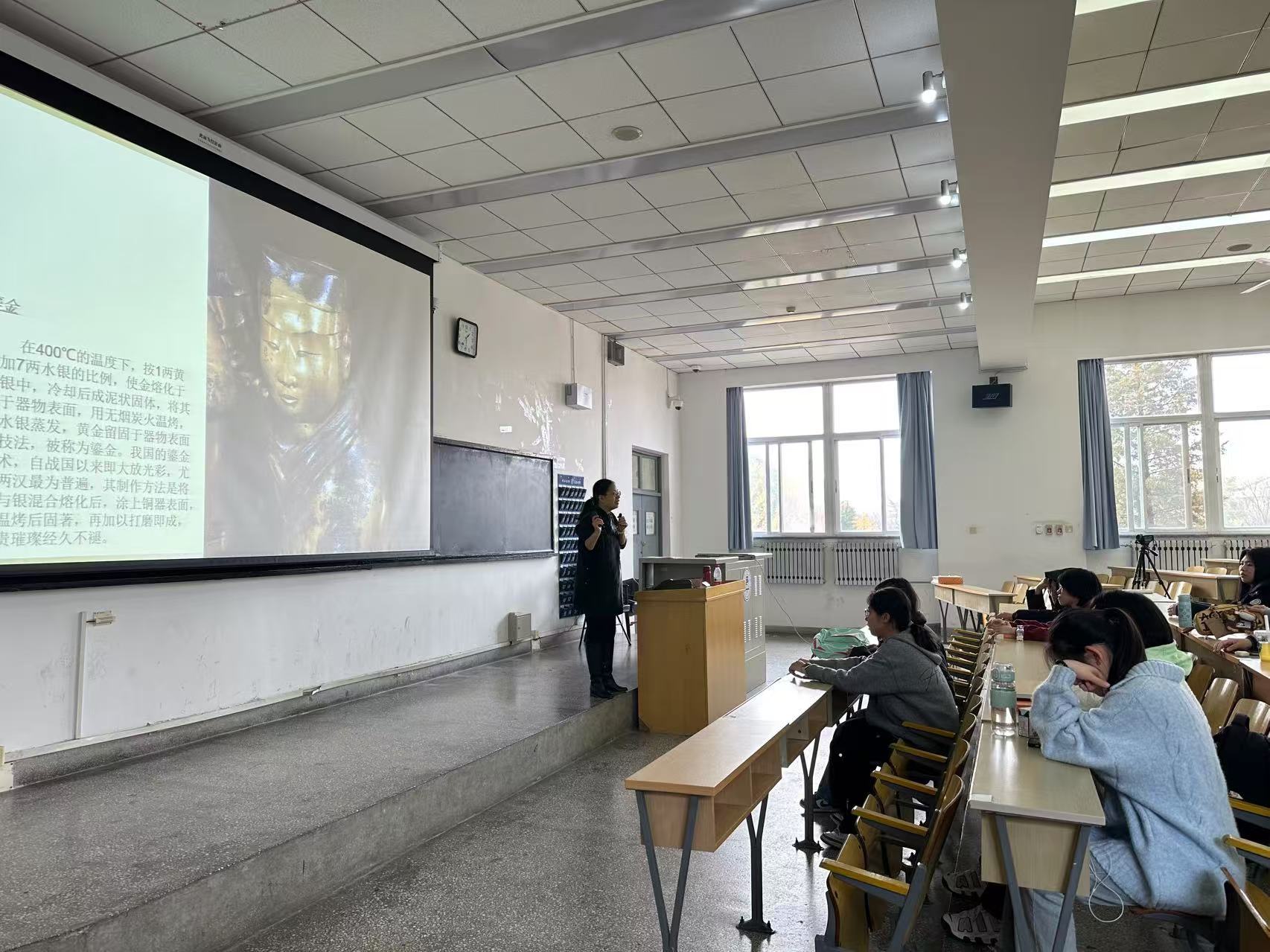 在教学楼N3E-301教室开展教学,在思政元素引导下提高专业课堂的感染力和实效性。课程内容为“艺术史——秦汉、魏晋艺术”,课程融合思政元素内容融入课程讲解中,在教授艺术史的同时实现思想育人,并为学生在后续专业课程中打好理论与实践基础。