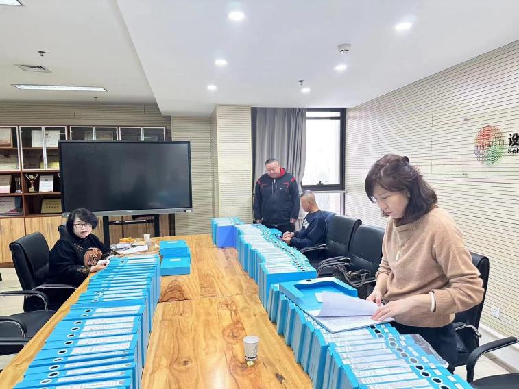 检查组由学校教学督导组的艺术组长滕晓铂,成员郭树林和张宏以及教务处工作人员组成。设艺学院主管教学副院长杨大禹,教学科研组全体成员参加了此次检查。检查内容是2022年9月以来的毕业设计、课程文件、实践文件等系列教学文件的规范情况。滕晓铂组长介绍了本次检查的要求和步骤,专家组检查了设艺学院的相关教学材料。