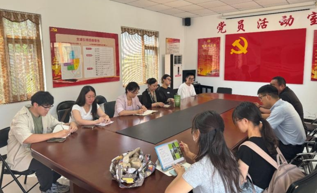 接下来双方在鲍家铺村村委会举行座谈。座谈会上,鲍书记介绍了鲍家铺村的发展现状、未来规划及当前面临的机遇与挑战。他讲道鲍家村在各项政策的扶持下,已逐步发展成为集艺术创作、文化交流、乡村旅游于一体的新型农村社区,并期待与北京印刷学院设计艺术学院在党支部共建方面开展更加广泛而深入的合作,共同探索乡村振兴的新路径。