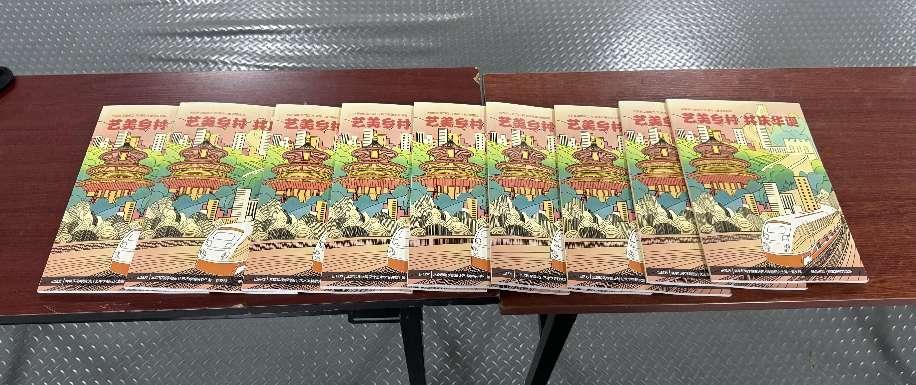展览现场还同步展出了由北京印刷学院设计艺术学院研究生党员同学们为鲍家铺村的孩子们创作的“艺美乡村,共庆华诞”红色主题涂色绘本,同学们发挥专业优势,传承弘扬红色文化,助力鲍家铺艺术村的美育教育。