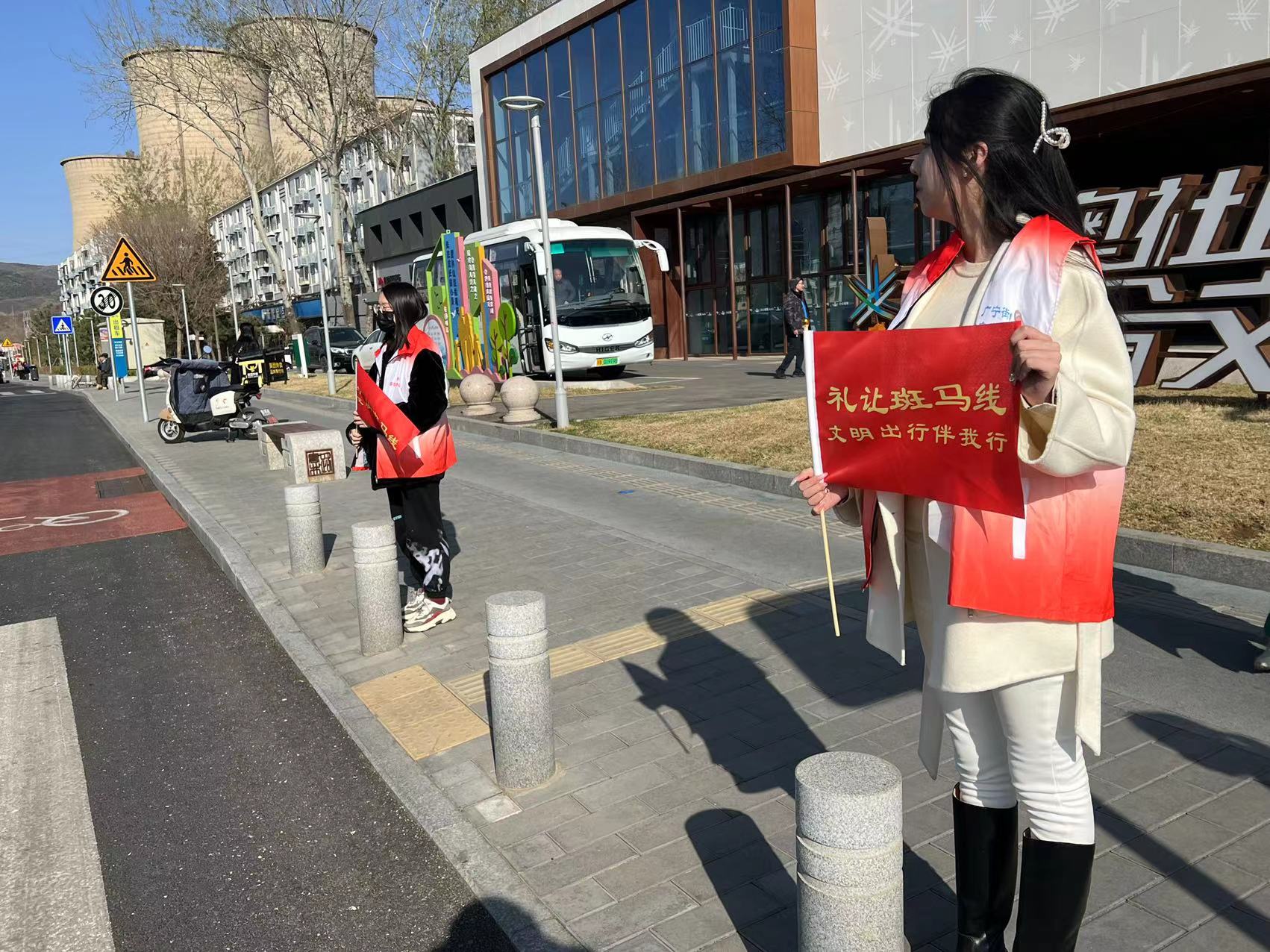 3月3日,设计艺术学院学生志愿者走进结对共建的石景山区广宁街道冬奥社区,开展“学雷锋——礼让斑马线”志愿服务活动。志愿者身穿红色马甲,手握文明劝导旗,积极地帮助交警维护交通秩序,提醒市民不闯红灯、不逆向行驶、不斜穿马路、不违规驶入机动车道、佩戴安全头盔,并对过往行人进行交通安全知识的宣传,提高了市民文明交通意识,营造了安全、畅通的交通道路环境。