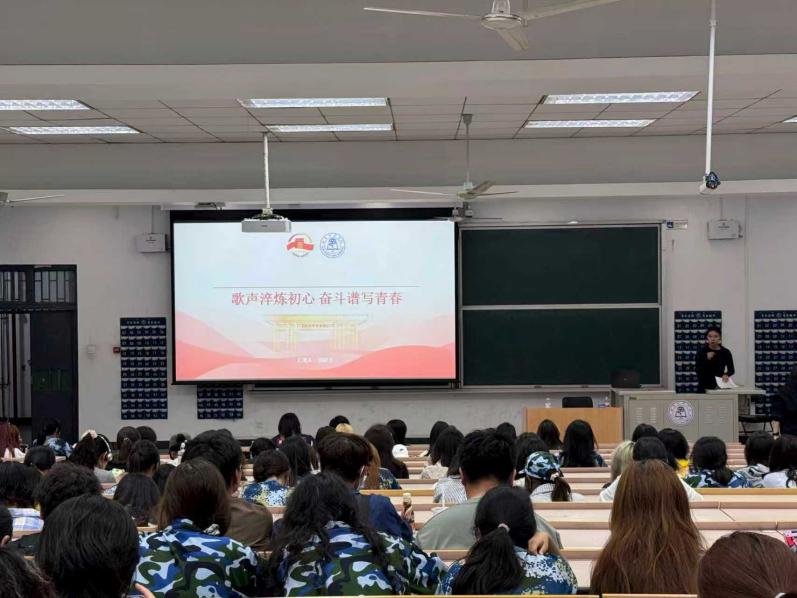 为引导新生坚定理想信念、树立远大志向,9月26日晚,我院举行“青春心向党,启航新征程——‘三观三感’教育暨优秀学子党课分享会”。会议由学院新生辅导员董琪琪主持,学院学工办副主任、党建辅导员曾琤,全体2025级本科新生参加活动。会上,两位优秀研究生党员代表分享了自己的成长故事与思想感悟。