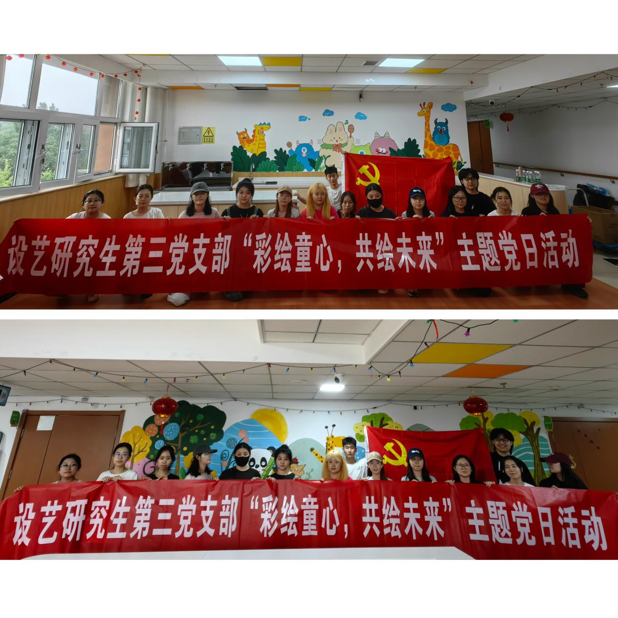 在六一儿童节即将来临之际,设计艺术学院研究生第三党支部结合专业优势,于5月23日组织支部党员来到北京市丰台区温馨精康园儿童福利院进行墙体彩绘活动。此次活动是学院 “立足百年新征程,绘制最美青春画卷”党建系列活动之“艺·引航”中“专业引航”的一部分。活动得到温馨精康园儿童福利院工作人员的充分肯定。