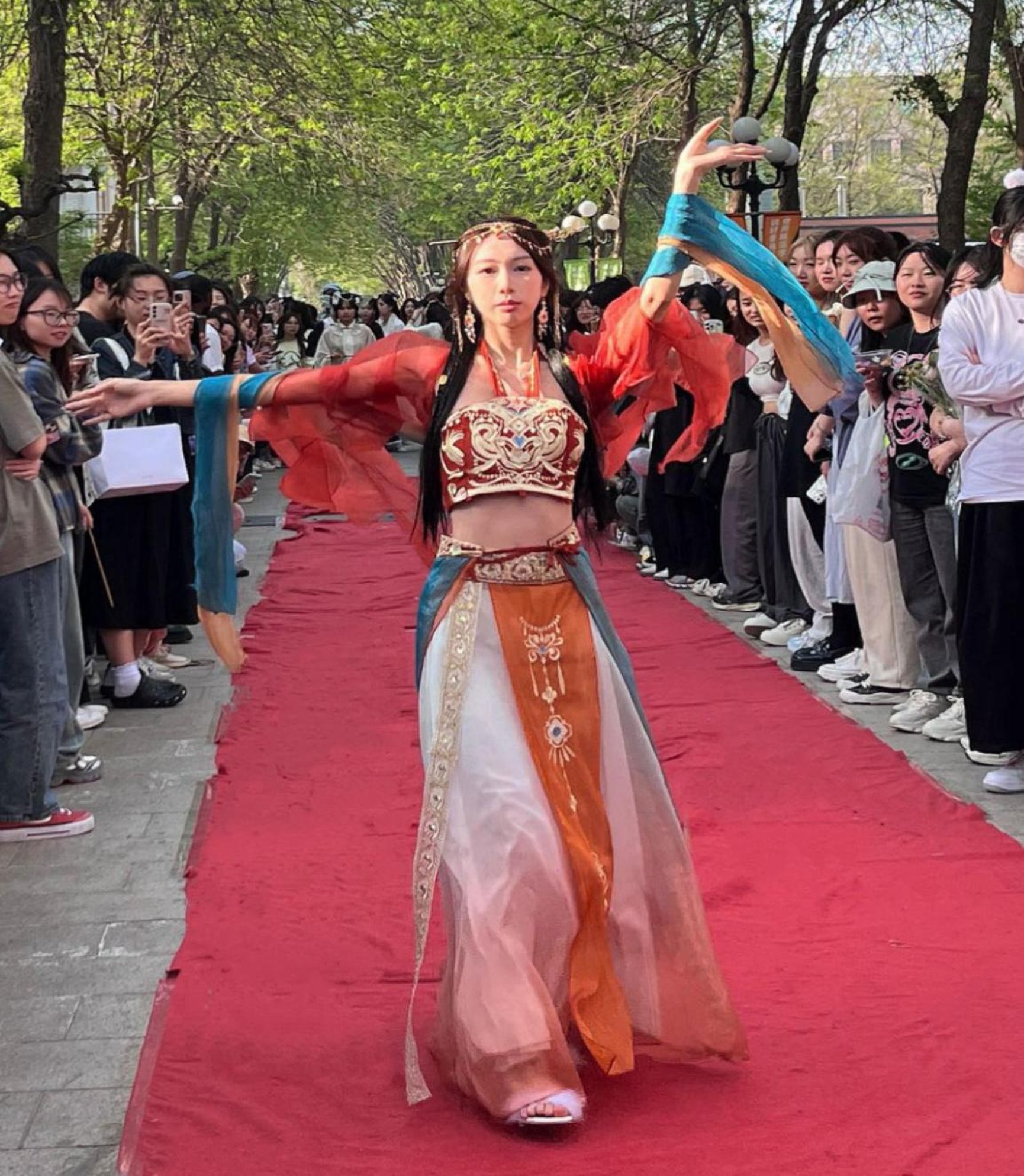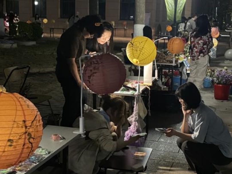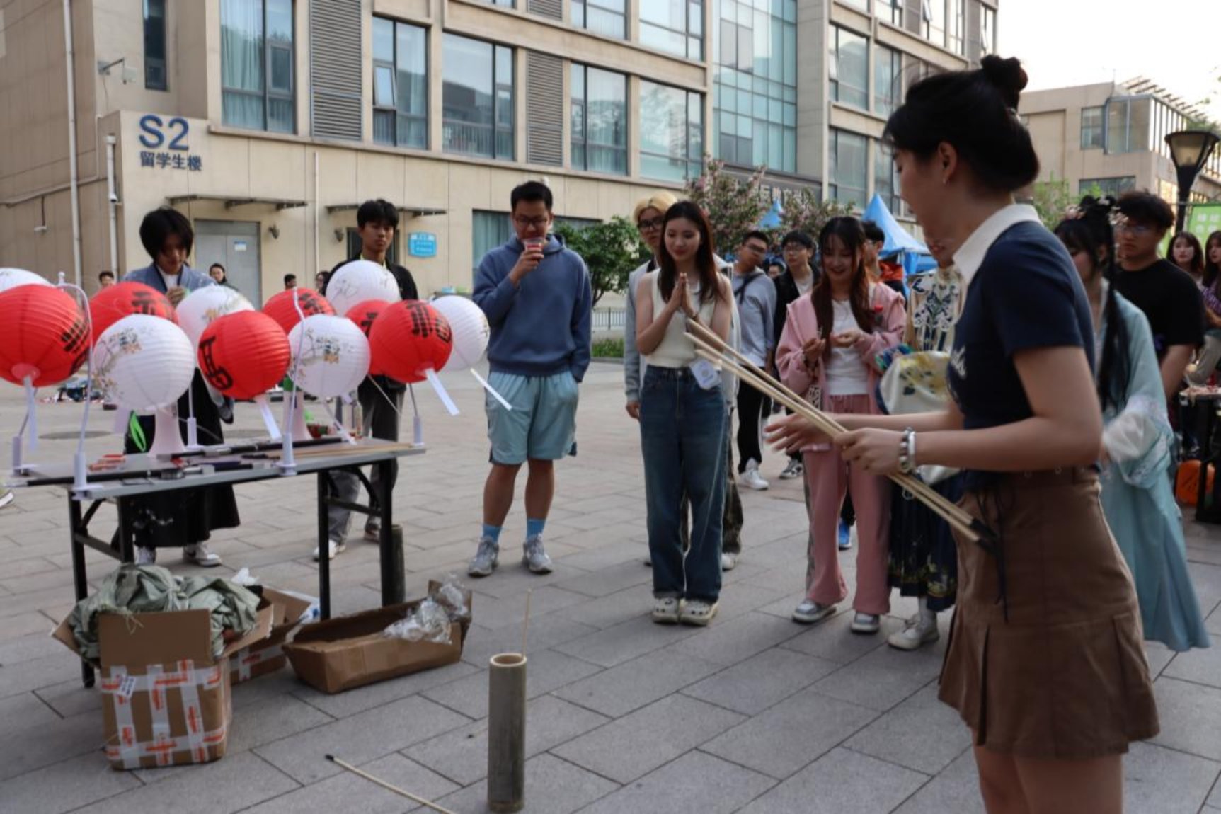 集市自15:00开始一直延续到21:30结束,现场还设有投壶、飞花令、猜灯谜、创意走秀等环节,售买互动,氛围热烈,使春日的校园生气勃勃。