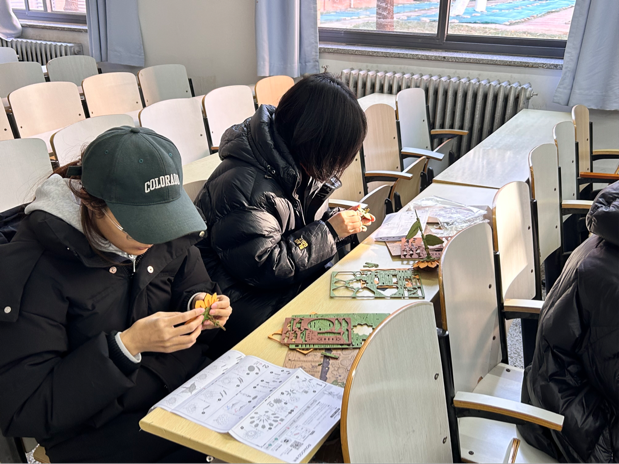 12 月 8 日下午,设计艺术学院举办“木艺繁花·木头里的智慧”手工拼插花卉活动。同学们围坐在摆满木料和工具的桌前,充分发挥创造力与动手能力,仔细研究拼插步骤,将一块块木料精心组合成绚丽多姿的花卉作品。有的同学专注于花瓣的雕琢,力求每一片都栩栩如生;有的同学则在色彩搭配上独具匠心,让花卉作品更显缤纷多彩。