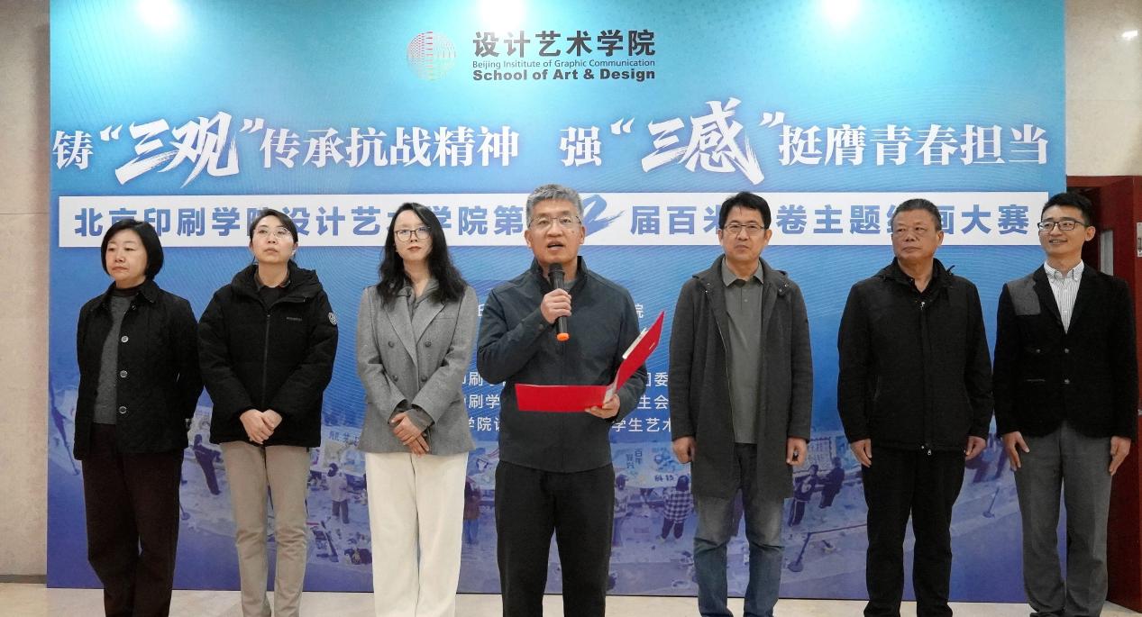设计艺术学院党委书记史民峰在致辞中指出,“百米长卷”大赛已举办22年,是思想政治教育工作与艺术专业特色深度融合的成果。他勉励参赛学生铭记历史,在艺术中传承抗战精神,在艺术表达中深化对历史的敬畏与精神的传承;拥抱时代,在学习中掌握新兴技能,注重艺术创作中的人文内涵培养;艺术赋能,在美育中培育“三观三感”,实现以美育人、以文化人。参赛学生代表杨冬旭表示,2025级新生将勤学多练专业技能,在感悟时代中明确方向,将伟大抗战精神内化于心,将专业所学外化于行,以强烈的行业使命感、专业自豪感和职业荣誉感,担当起出版强国、文化强国建设的光荣使命,努力成长为可堪大用、能担重任的新时代青年。