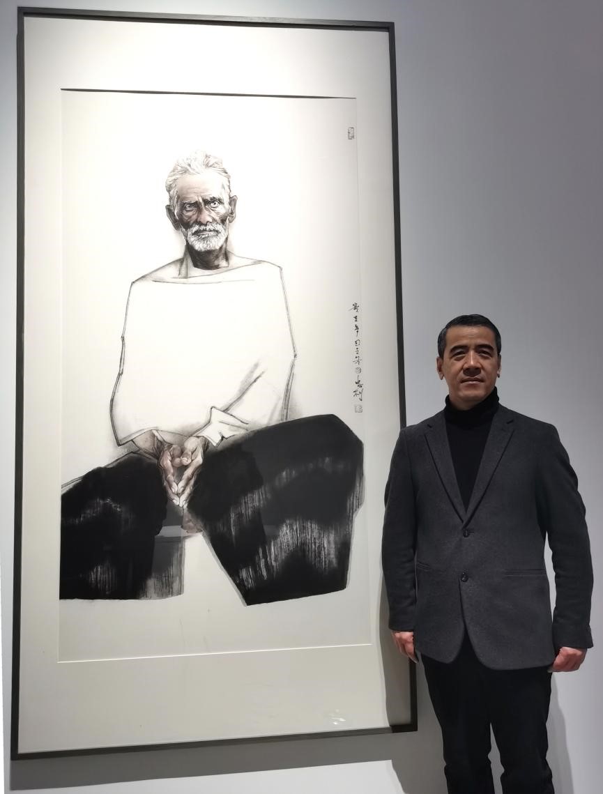 田忠利参展中国画作品《岁月》,将巴基斯坦人物作为表现对象,以中国传统水墨意趣、意象造型与“抟实为虚”“计白当黑”的美学理念为核心,融合西方绘画的造型观念,形成独特的艺术语言和表达方式。通过对人物形象脸部五官、双手及形体着装的不同处理手法,使人物形象既体现出“传神写照”的人文关怀,又呈现出“形神兼备”“气韵生动”的艺术效果。