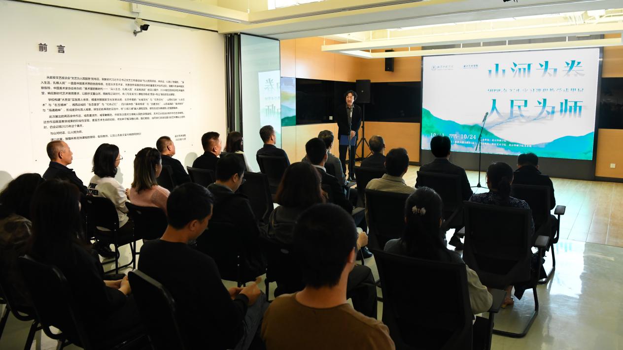 10月14日,“山河为卷 人民为师”——2025年写生实习课程教学成果展在学校美术馆开幕。本次展览由设计艺术学院、北京印刷学院美术馆承办。学校党委书记张鑫,党委副书记、院长田忠利,党委副书记白莽,党政办、教务处、安稳处负责人和设计艺术学院、新媒体学院相关负责人及课程师生代表参加开幕式。开幕式由设计艺术学院院长张晓东主持。