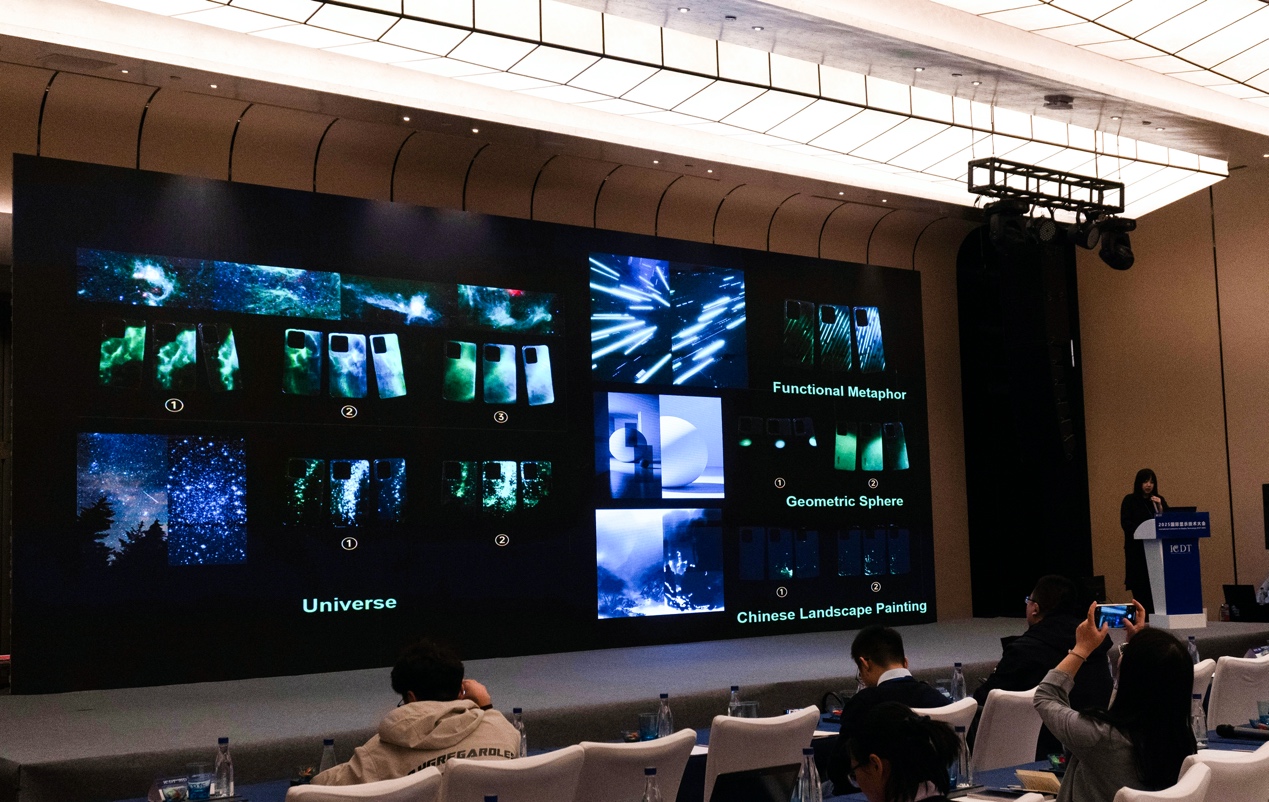 在设计任务完成后,全息艺术实验室主任王硕与维沃尔移动通信有限公司高级技术规划师王建洪带领团队将实践与理论高效结合,将项目研究成果《Innovations in Smartphone Design Using Reflective Holographic Technology》进行发表。2025年3月26日,学校24级研究生马晓爽在2025国际显示技术大会(ICDT 2025)上进行了主旨汇报,引发设计、材料与显示领域专家的广泛关注与热烈讨论。